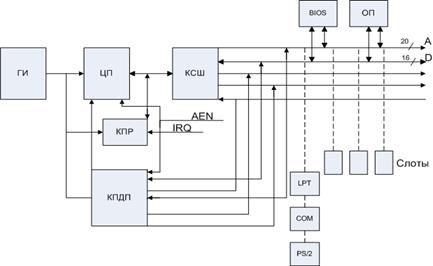 · Внешняя шина для подключения устройств ввода/вывода - ISA (Industry Standard Architecture), 16 бит, 8 МГц