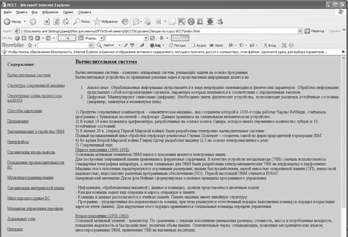 На основе подготовленных документов создан электронный учебник, который можно просмотреть на прилагаемом диске. Некоторые фрагменты учебника представлены в приложении.