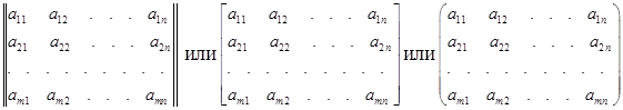 Для записи матрицы применяются либо сдвоенные черточки, либо круглые или квадратные скобки: