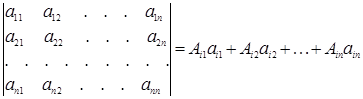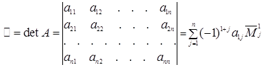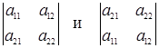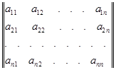 вводится понятия главной и побочной диагоналей. Главной диагональю матрицы называется диагональ a 11 a 22 … an n , идущая из левого верхнего угла этой матрицы в правый нижний её угол. Побочной диагональю матрицы называется диагональ an 1 a ( n - 1)2 … a 1 n , идущая из левого нижнего угла в правый верхний угол.