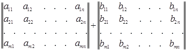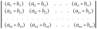 Для обозначения суммы двух матриц используется запись C=A+B. Операция составления суммы матриц называется их сложением .
