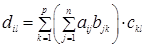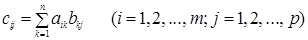 Формула (1.4) представляет собой правило составления элементов матрицы C,являющейся произведением матрицы A на матрицу B.