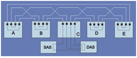 Одній з найбільш популярних мереж, що використовують оптичне волокно, (не рахуючи fast ethernet) є FDDI. FDDI (fiber distributed data interface, ISO 9314–1, rfc-1512–1390, -1329, -1285) стандарт американського інституту стандартів (ansi), прийнятий без зміни ISO. Протокол розрахований на фізичну швидкість передачі інформації 100 Мбіт/с і призначений для мереж з сумарною довжиною до 100 км (40 км. для мультимодових волокон) при відстані між вузлами 2 км. або більш. Частота помилок в мережі не перевищує 10–9. У FDDI використовується схема подвійного кільцевого лічильника (Рис. 1.1.3.1; буквами а, b, c, d і e позначені станції-концентратори). Кільцева схема єдине можливе рішення для оптичного волокна (не рахуючи схеми крапка-крапка). Для доступу до мережі використовується спеціальний маркер (розвиток протоколу IEEE 802.5 – Token Ring). Мережі FDDI не мають собі рівних при побудові опорних магістралей (backbone) локальних мереж, дозволяючи реалізувати принципово нові можливості – видалену обробку зображень і інтерактивну графіку. Зазвичай пристрої (DAS – dual attached station) підключаються до обох кілець одночасно. Пакети по цих кільцях рухаються в протилежних напрямах. У нормі тільки одне кільце активне (первинне), але при виникненні збою (відмова в одному з вузлів) активізується і друге кільце, що помітно підвищує надійність системи, дозволяючи обійти несправну ділянку (схема з'єднань усередині станцій-концентраторів на Рис. 1.1 є сильно спрощеною). Передбачена можливість підключення станцій і лише до одного кільця (SAS – single attached station), що помітно дешевше. До одного кільця можна підключити до 500 das і 1000 sas. Сервер і клієнт мають різні типи інтерфейсів.