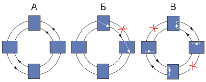 Рис. 1.1. Схема зв'язків в подвійному кільці FDDI