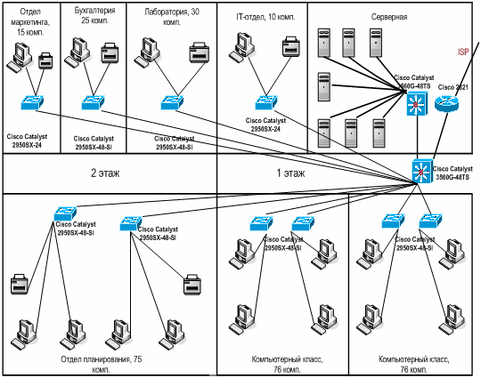 1) виконаний огляд технологій побудови локальних і корпоративних комп'ютерних мереж, на основі аналізу вибрані технології побудови комп'ютерних мереж структурних підрозділів авіакомпанії «Північна компанія»;