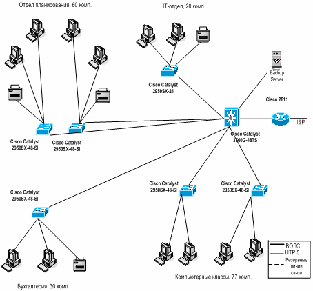 4) проведено розрахунок матеріальних витрат на проектування і монтаж комп'ютерної мережі, розрахунок витрат на покупку мережевого устаткування і періоду окупності.