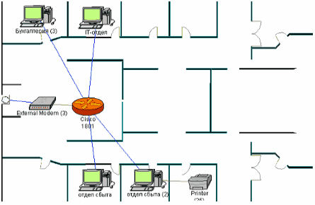 3) проведено проектування архітектури і моделювання роботи комп'ютерної мережі авіакомпанії «Північна компанія» за допомогою спеціалізованого програмного забезпечення, обґрунтований варіанти організації каналів передачі даних між філіями організації;