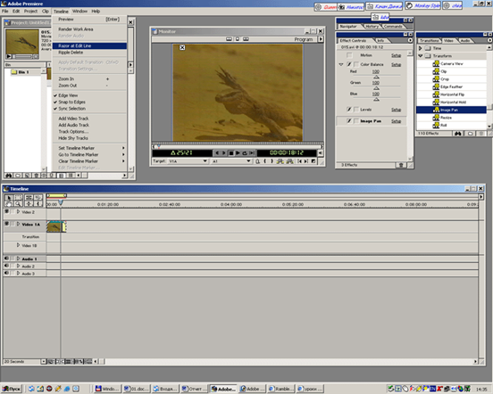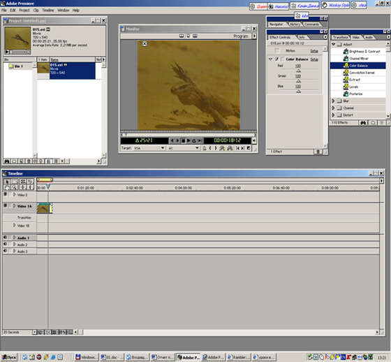 Теперь ближе к самой процедуре видеомонтажа в Adobe Premiere 6.5