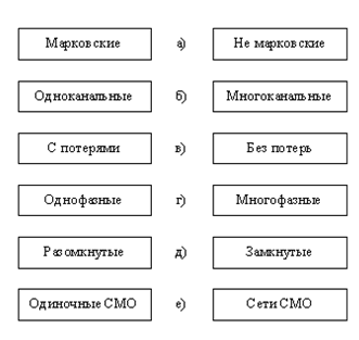 Прежде всего они разделяются на марковские и немарковские (рисунок 2.1, а), что связано с определенными классами марковских процессов, с помощью которых описывается их динамика. Эти два класса систем массового обслуживания аналогичны соответственно линейным и нелинейным системам автоматического регулирования, динамика которых описывается линейными и нелинейными дифференциальными уравнениями. Так же как и в теории автоматического регулирования, не существует общих методов расчета нелинейных СМО.