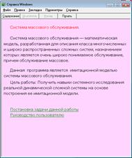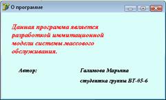 Интерфейс программы должен включать описание СМО в соответствии с вариантом, сведения о разработчике, краткую справку (руководство пользователю).