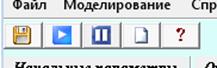 Панель инструментов. С помощью панели инструментов можно быстро сохранить отчет, начать процесс моделирования, остановить процесс моделирования, очистить начальные параметры, а также посмотреть общую справку по системе (Рисунок 3.10).