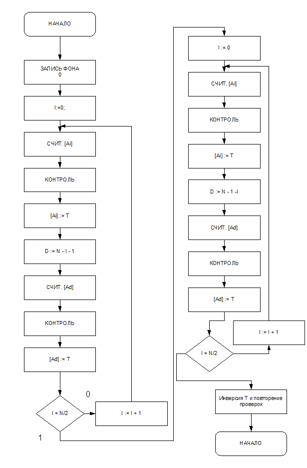 - тест ОЗУ методом «Обращение по прямому и дополняющему адресам»;