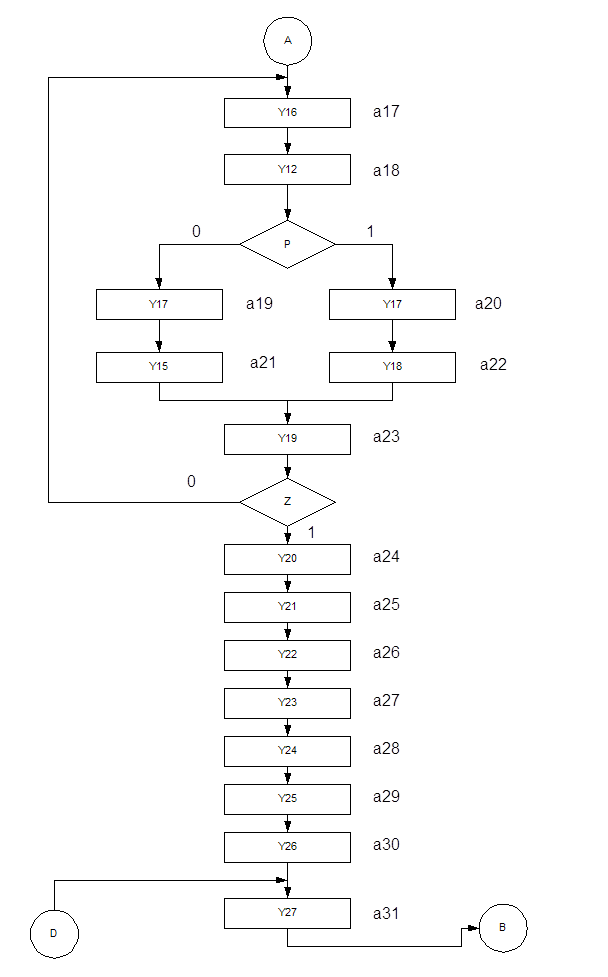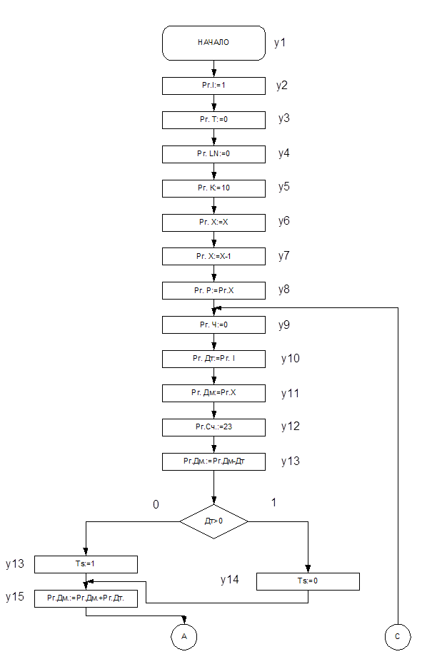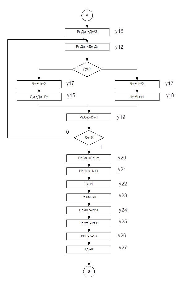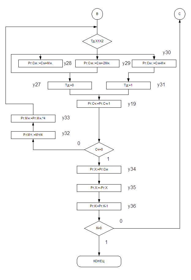 Блок-схема микроопераций, реализующая данную математическую операцию представлена ниже. (Рис. 4.)