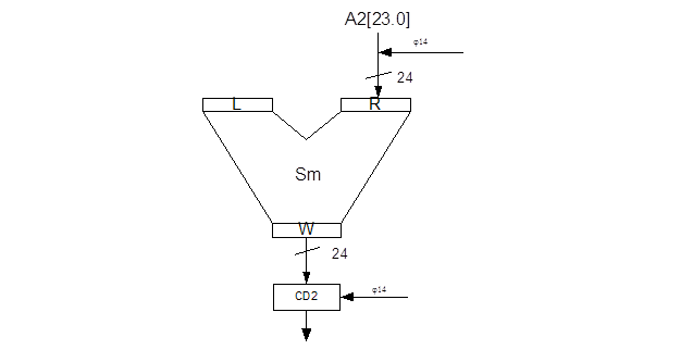 Автоматы данного типа меньшую аппаратную сложность, однако, производительность вычислений уменьшается до одной операции за такт. Логические условия в автомате М-типа могут формироваться как в АЛУ, так и в самих регистрах – путём соответствующих выводов к управляющему автомату.
