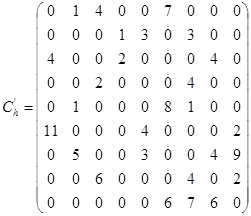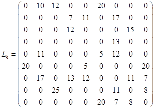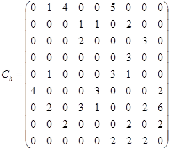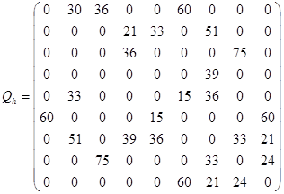 Структуру транспортных потоков в железнодорожной сети можно представить в виде графа Gh, где h-вариант организации транспортных потоков в железнодорожной сети. Перевозки в сети реализуются в соответствии со следующими параметрами, определяемыми матрицами:
