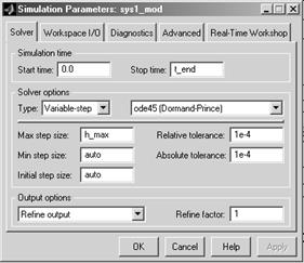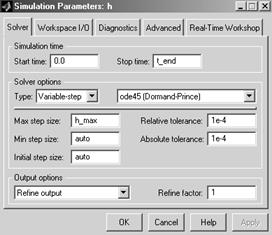Параметры моделирования следует задать в окне Simulation Parameters, доступном через меню Simulation\Simulation parameters окна, вкоторомоткрыт mdl‑файл (рис. 1.4).