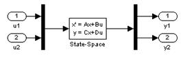 Промоделировать систему, описанную в векторно-матричной форме, позволяет блок State-Space раздела Continuous основной библиотеки блоков Simulink. Структурная схема системы также может быть создана на основе блоков этой же библиотеки. Начальные условия следует принять нулевыми. Полученные структуры рекомендуется объединить в подсистемы, выделив все их элементы и выполнив команду CreateSubsystem меню Edit или нажав на сочетание клавиш Ctrl+G.