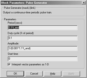 При организации источника входного воздействия (единичной или дельта-функции) следует использовать блоки Step и Pulse Generator раздела Sources. Обратите внимание на то, что необходимо подобрать длительность входного импульса, который бы воспринимался системой как дельта-функция (площадь импульса должна быть равна 1 ), т.е. значение длительности должно быть таким, чтобы его уменьшение уже не приводило к изменению отклика системы.