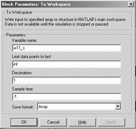 Для визуализации процессов, соответствующих элементам матричной весовой и переходной функций, рекомендуется выводить их, а также текущее время моделирования в рабочую область памяти Mаtlab при помощи блоков ToWorkspace раздела Sinks, а затем строить их графики, используя команды построения графиков функций одной переменной. В этом случае не возникает проблем с переносом полученных результатов в электронную версию отчета по лабораторной работе и имеется возможность соблюсти все необходимые правила оформления графиков.