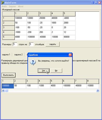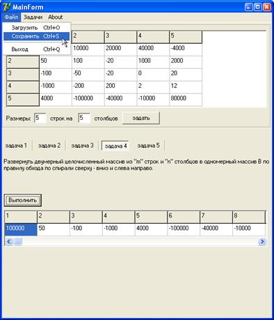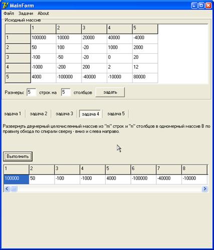 317 UnwindMatrix(workMatrix, arrayB);//наполним массив, обходя матрицу по спирали