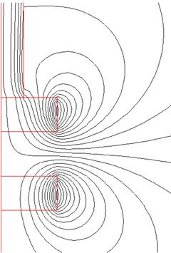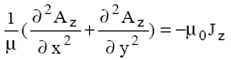 Если в модели ЭУ принять, что ток, а следовательно, и векторный магнитный потенциал имеют только z-составляющую, то получим плоскопараллельную или осесимметричную задачу. Для плоскопараллельного магнитного поля в декартовой системе координат можно записать уравнение Пуассона