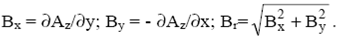 Решив данное уравнение и зная распределение векторного магнитного потенциала по области моделирования, можно найти распределение составляющих вектора магнитной индукции и результирующего значения (модуля) вектора магнитной индукции по выражениям