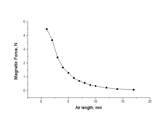 Рис.3.18 График зависимости удерживающей силы магнитного поля, действующего на ферромагнитное основание от расстояния между магнитным держателем и основанием.
