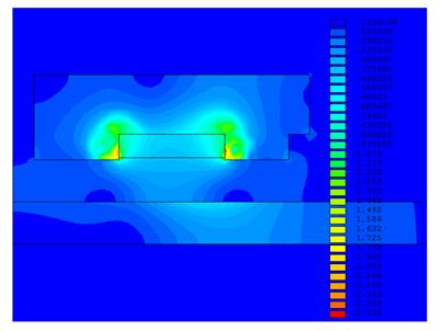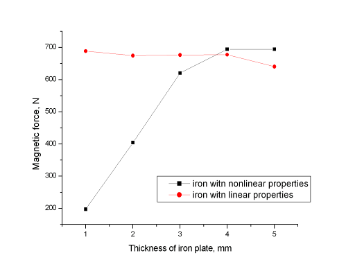 Определена сила магнитного поля на ферромагнитное основание экспериментально и методами программной системы конечно-элементного анализа ANSYS, в зависимости от величины воздушного зазора между магнитным держателем и пластиной. Было получено распределение модуля магнитной индукции по поперечному сечению магнитной системы для каждого значения воздушного зазора.