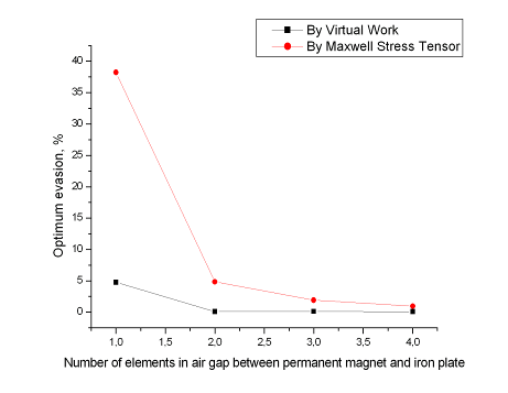 Магнитная пружина – демпфер, для нее было важно определить максимальную удерживающую силу. Используемые в системе магниты были малогабаритные, поэтому провести эксперимент не представляло трудности. Результаты эксперимента совпали с расчетными данными, поэтому можно использовать программный комплекс ANSYS для решения подобных задач. Также были рассмотрены различные конечно-элементные расчетные модели для сравнения полученных результатов и выбора оптимального варианта. Была исследована сходимость методов расчета программной системы конечно-элементного анализа ANSYS в зависимости от числа элементов модели.