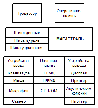 Магистрально-модульный принцип построения компьютера.