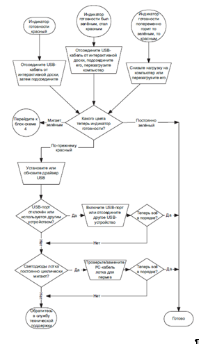– Индикатор готовности будет мигать зелёным светом, показывая, что интерактивная доска взаимодействует с интерфейсом USB модуля Bluetooth.