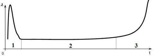 Вероятность безотказной работы Р(t) – это математическое ожидание того, что в заданном интервале времени не произойдет отказа. Вероятность безотказной работы Р(t) связана с интенсивностью отказов l следующей формулой: