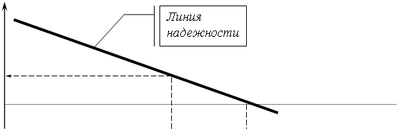 Через точку P(1) проводится горизонтальная линия. Линия надежности определяется экспериментальным законом. На оси t откладывается T0 и эта величина сносится на горизонтальную линию, проведенную через точку P(1). Полученную точку соединяем прямой линией с точкой P(t)=1. Эта и есть линия надежности.