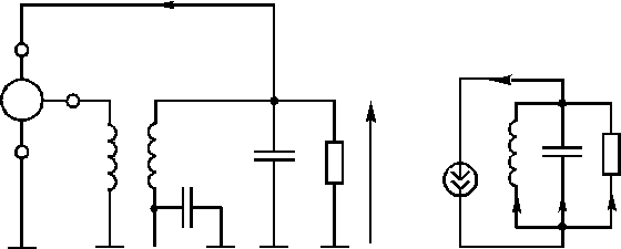Рисунок 1.2 – Принципиальная электрическая и эквивалентная схемы транзисторного автогенератора