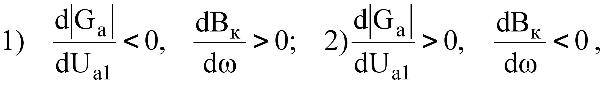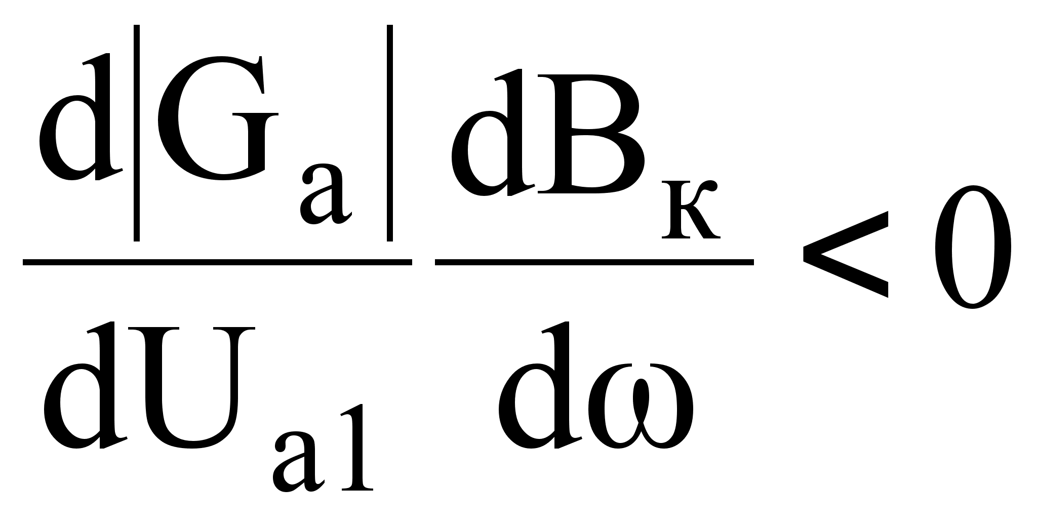 Уравнения (1.5) и (1.6) являются условиями существования стационарного режима автоколебаний. Рассмотрим их физический смысл. В соответствии с рисунком 1.6 выходная мощность АЭ P_= 0.5U2a1Ga (так как Ga < 0, то Р_ < 0), а мощность, потребляемая резонатором (с учетом нагрузки), P+=0.5U2a1Gk. При выполнении условия (1.5) P_= -P+.Таким образом, (1.5) - это условие баланса активных мощностей.
