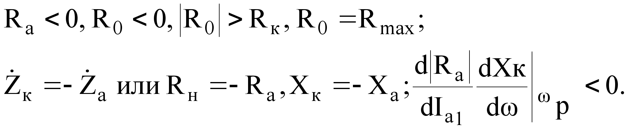 Фазовый угол (a между колебаниями первых гармоник тока ia(t) и напряжения ua(t) зависит от фазовых сдвигов в АЭ и цепи обратной связи. Если /2<a<3/2, то мощность Р_=0,5 Iа1Ua1*cos(a) отрицательна; это означает, что АЭ отдает ее в резонатор /4/.