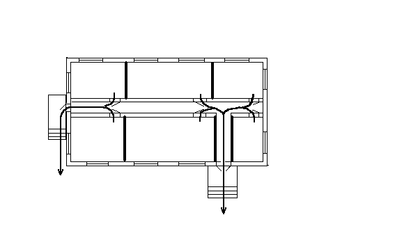 На данном плане показаны кратчайшие пути выхода из здания, включая аварийный выход. При этом не создаются пробки в коридорах и в дверных проходах, что позволяет покинуть помещение в кратчайшее время.