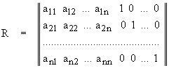 Пусть имеем матрицу A вида (2.1.1) и пусть B – единичная диагональная матрица такого же размера. Создадим рабочую матрицу R размером Nґ 2N просто присоединив матрицу B справа к матрице A :