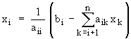 Теперь можно вычислить искомые величины xi , начиная с последнего, т.е. вначале находится xn , затем xn-1, xn-2, … , x1. Формула для вычислений имеет вид: