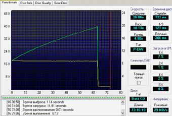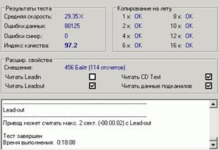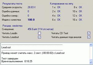 Тесты проводились на чтение. Мы использовали уже устоявшийся набор носителей, в результате чтения которых можно сделать выводы о качестве механизма коррекции ошибок, скорости работы, функциональности в режиме аудиограбера. Хотя и наступила эра DVD и более емких носителей, от обычных лазерных дисков пока никто отказываться не собирается. Вот так читают обычный CD, хорошего качества, ASUS и NEC (скриношоты, соответственно, здесь и далее по тексту, если нет оговорок, сначала ASUS DRW-1608P потом для наглядного сравнения NEC ND-3540A).