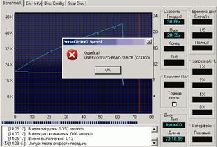 Тестирование на проблемном DVD-Video диске «имеющим царапины».