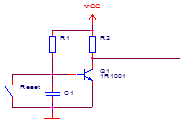Для такой схемы подходит включение транзистора, показанное на рисунке 2.2. Когда ключ открыт, транзистор находится в закрытом состоянии и на вход RESETAVR поступает сигнал логической единицы. Когда ключ замыкается, транзистор открывается и на вход сброса устройства поступает сигнал логического нуля.