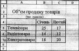 Розглянемо приклад побудови діаграми по таблиці. Для таблиці, поданої на рисунку, кількість рядів даних і категорій залежать від способу розміщення даних.