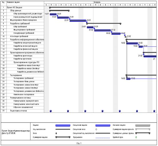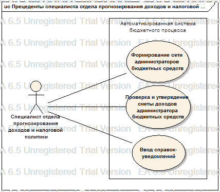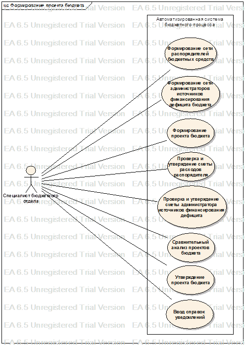 К сожалению, эти комплексы задач столь объемны, что не представляется возможным описать и реализовать их все в рамках одного дипломного проекта. Представленный проект полностью охватывает реализацию первого комплекса задач из приведенного выше списка, а также от части седьмого комплекса. Следует отметить, что архитектура информационной системы, спроектированной в рамках дипломного проекта, позволяет легко расширять функциональные возможности программы, что позволяет при дальней проработке предметной области реализовать в системе недостающие комплексы подзадач бюджетного процесса.