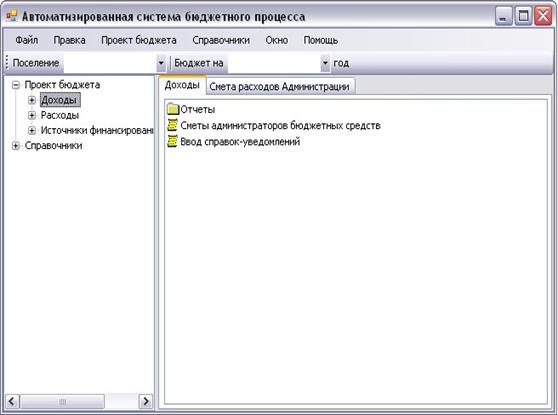 Автоматизированная система бюджетного процесса позволяет упростить и ускорить процесс составления проекта бюджета как отдельно взятого поселения, так и всей территории в целом. Архитектура автоматизированной системы бюджетного процесса, предложенная в дипломном проекте, предполагает размещение части программного комплекса непосредственно на компьютерах администраторов и распорядителей бюджетных средств, а также администраторов источников финансирования дефицита бюджета, что позволяет повысить оперативность составления проекта бюджета. Другой отличительной особенностью разработанной системы является ее модульность, т.е. в архитектуре системы изначально заложена возможность расширения ее функциональных возможностей за счет подключаемых модулей.