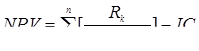 При разовой инвестиции расчет чистого приведенного дохода можно вычислить по следующей формуле: