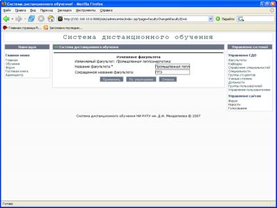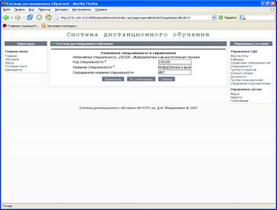 Дипломная работа: Разработка системы дистанционного обучения кафедры ВТИТ