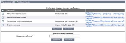 Для администрирующих пользователей будет доступен полный список учебников, а для авторов учебных курсов, только курсы, где они являются авторами.