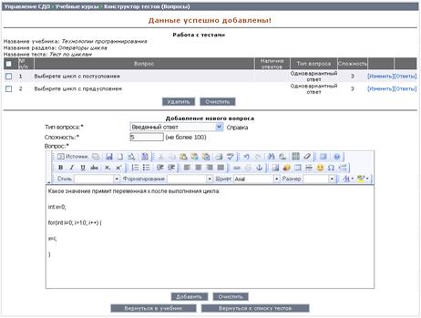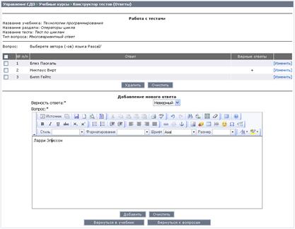 Рисунок 2.5.3.5 – Добавление ответа на вопрос