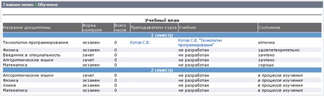 На рисунке 2.5.4.1 показан вид учебного плана, который доступен идентифицировавшемуся студенту.